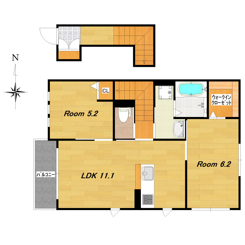 | 間取り詳細 | 洋6.2×洋5.2×LDK11.1 | 構造 | 軽量鉄骨 |