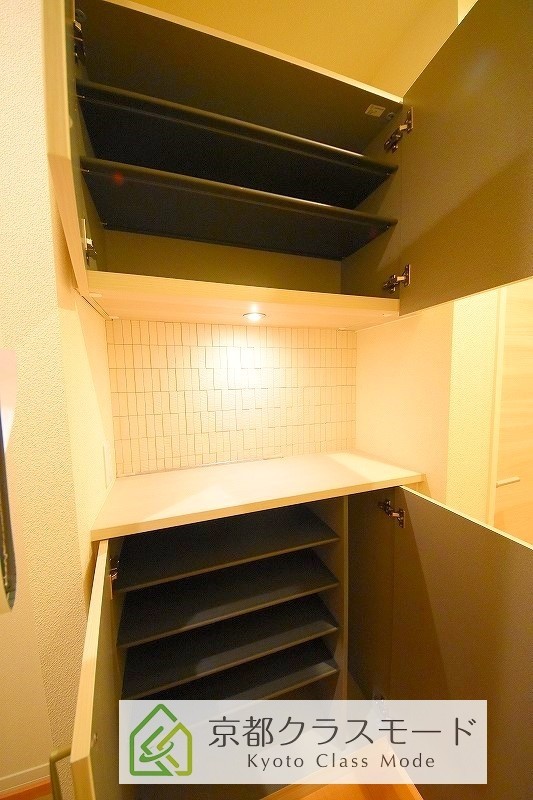 オートロック、防犯カメラ、宅配BOX、専用ゴミ置場、敷地内ガレージ、駐輪場、バイク置場(中型以上)、都市ガス[室内設備]