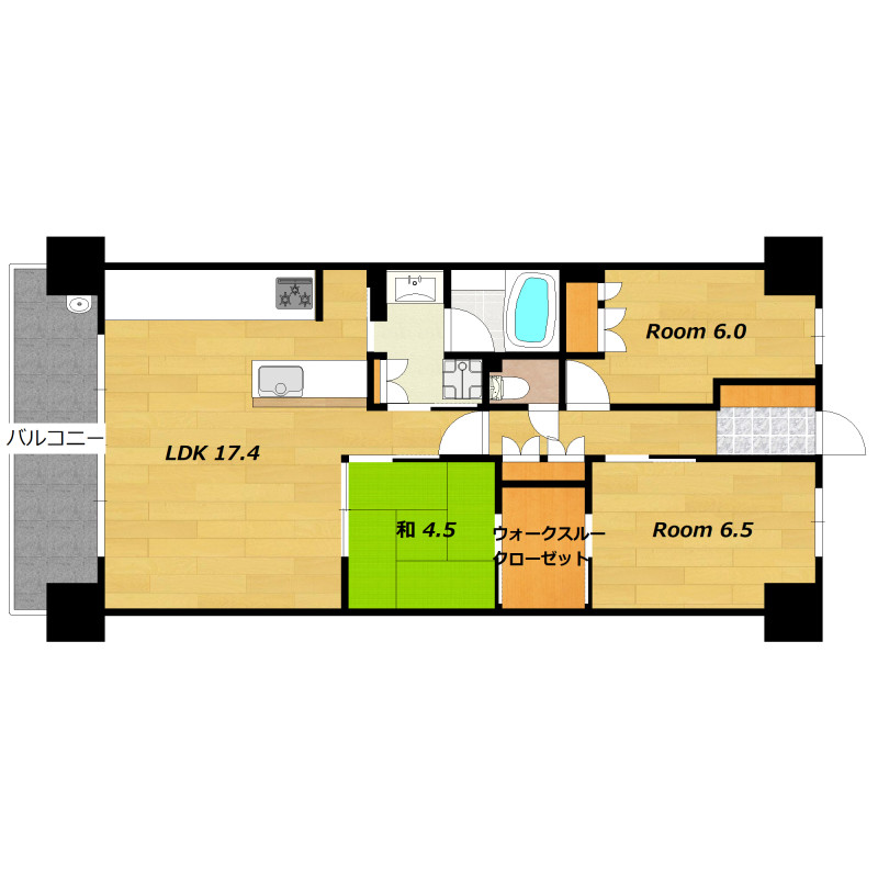 | 間取り詳細 | 洋6.5×洋6×和4.5×LDK17.4 | 構造 | 鉄筋コン |